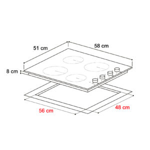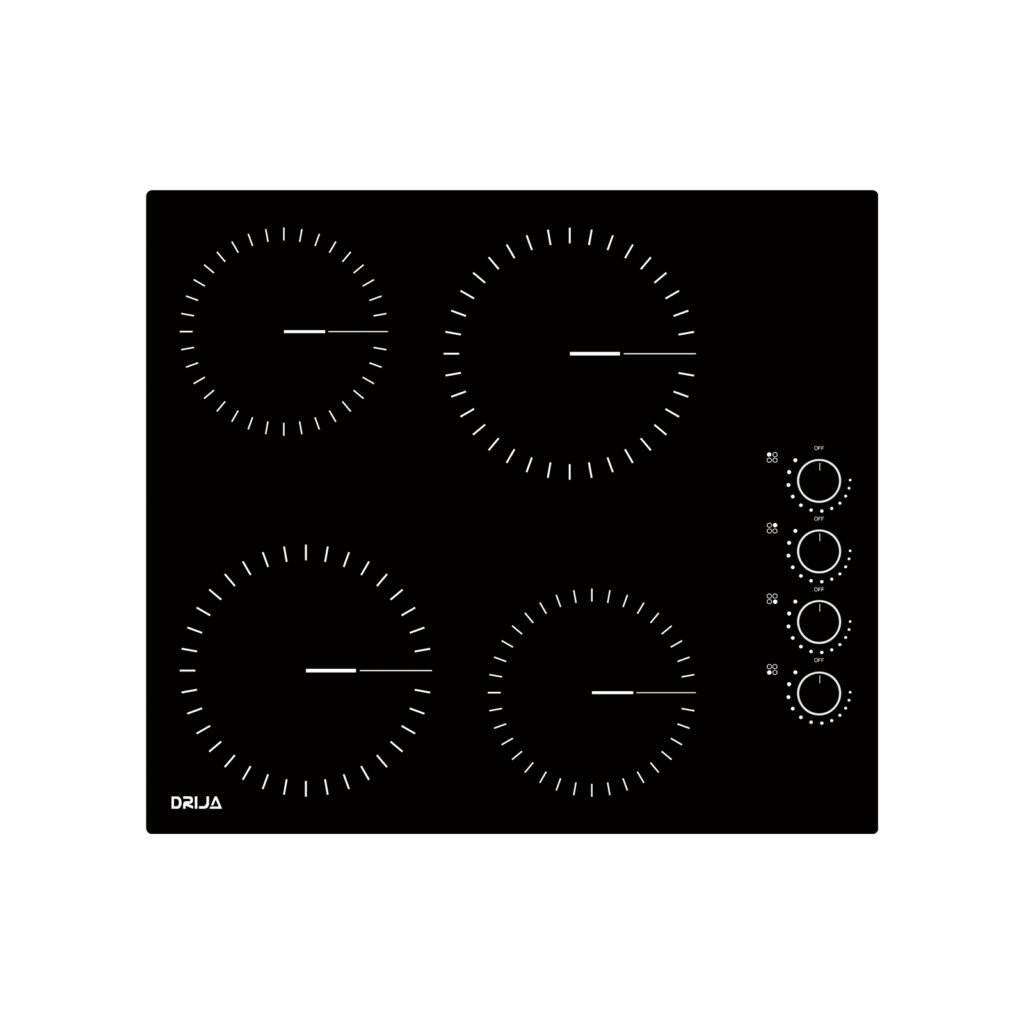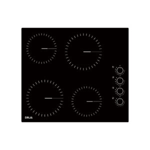 El Bari 60 es un tope eléctrico de 60 cm ideal para quienes buscan potencia, elegancia y control preciso. Su superficie de vitrocerámica negra resistente, cuatro zonas radiantes EGO y perillas metálicas lo hacen perfecto tanto para cocinas familiares como profesionales.