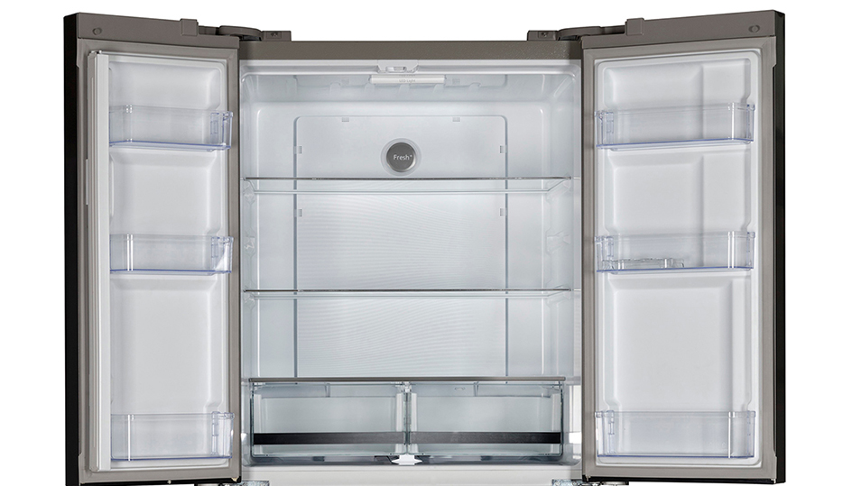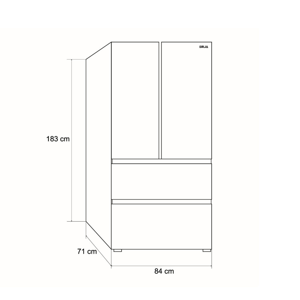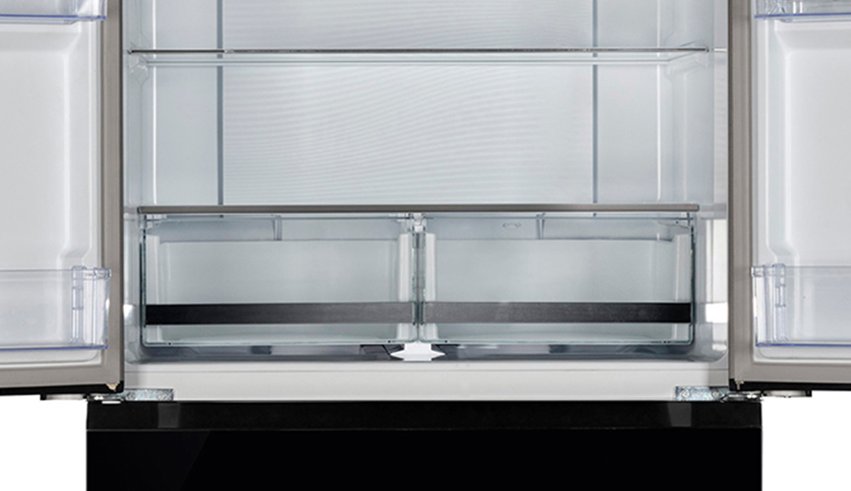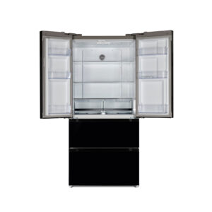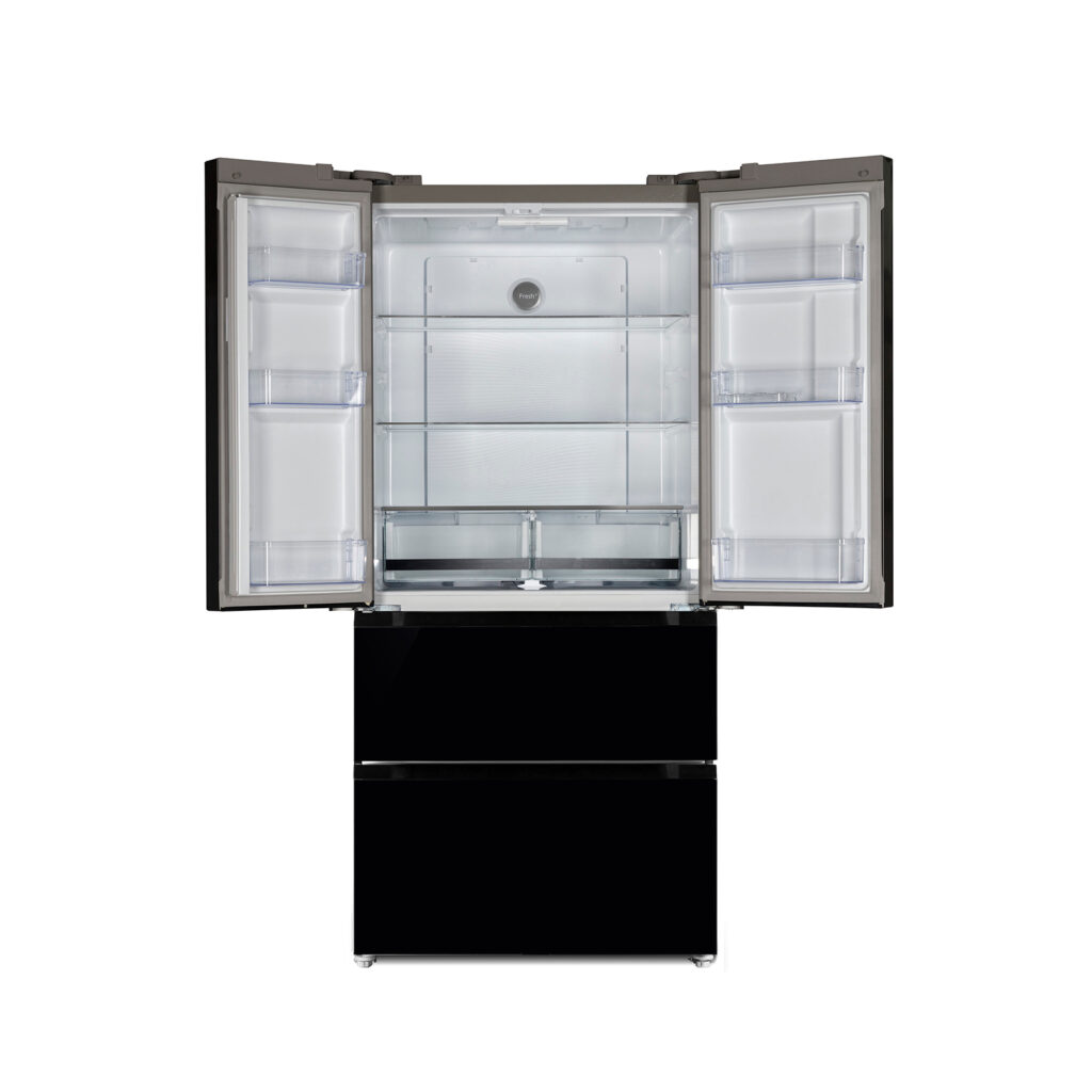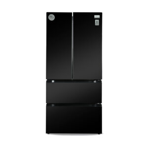 El refrigerador BLACK-18D4P de DRIJA, con diseño French Door y acabado en vidrio templado color negro, combina estilo y capacidad con 18 P³ / 506 L. Cuenta con doble gaveta de congelación para optimizar el almacenamiento, Ultra Fast Cooling para enfriar más rápido y filtro de carbón que conserva la frescura de los alimentos. Sus bandejas de vidrio templado y superficie de fácil limpieza garantizan durabilidad y practicidad en el día a día.