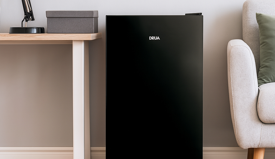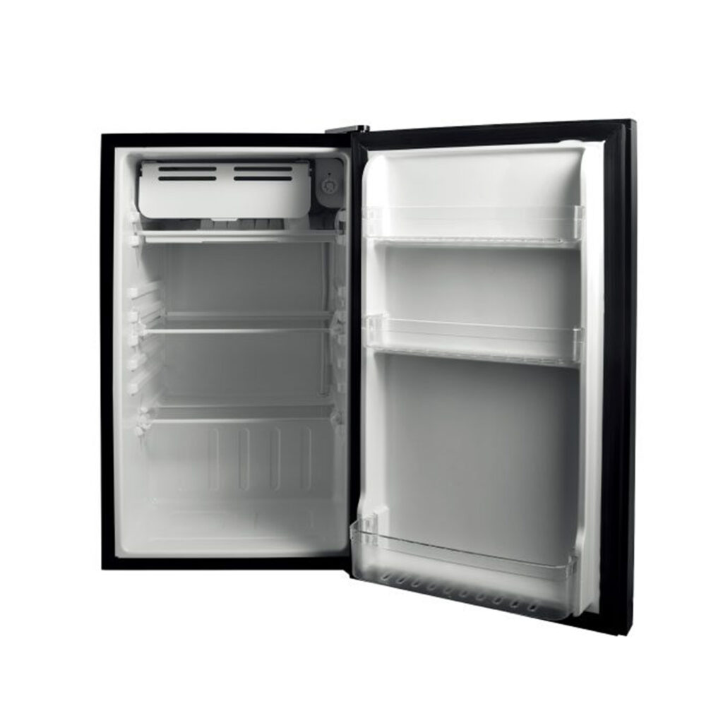 La BLACK-3 de DRIJA es una nevera compacta de 3.2 Pies cúbicos ideal para espacios reducidos como oficinas, estudios o suites. Su diseño con acabado en vidrio negro templado brinda un toque moderno y elegante, mientras que sus puertas reversibles y niveles de enfriamiento ajustables ofrecen total practicidad. Incluye estantes de vidrio templado y patas ajustables para mayor estabilidad.