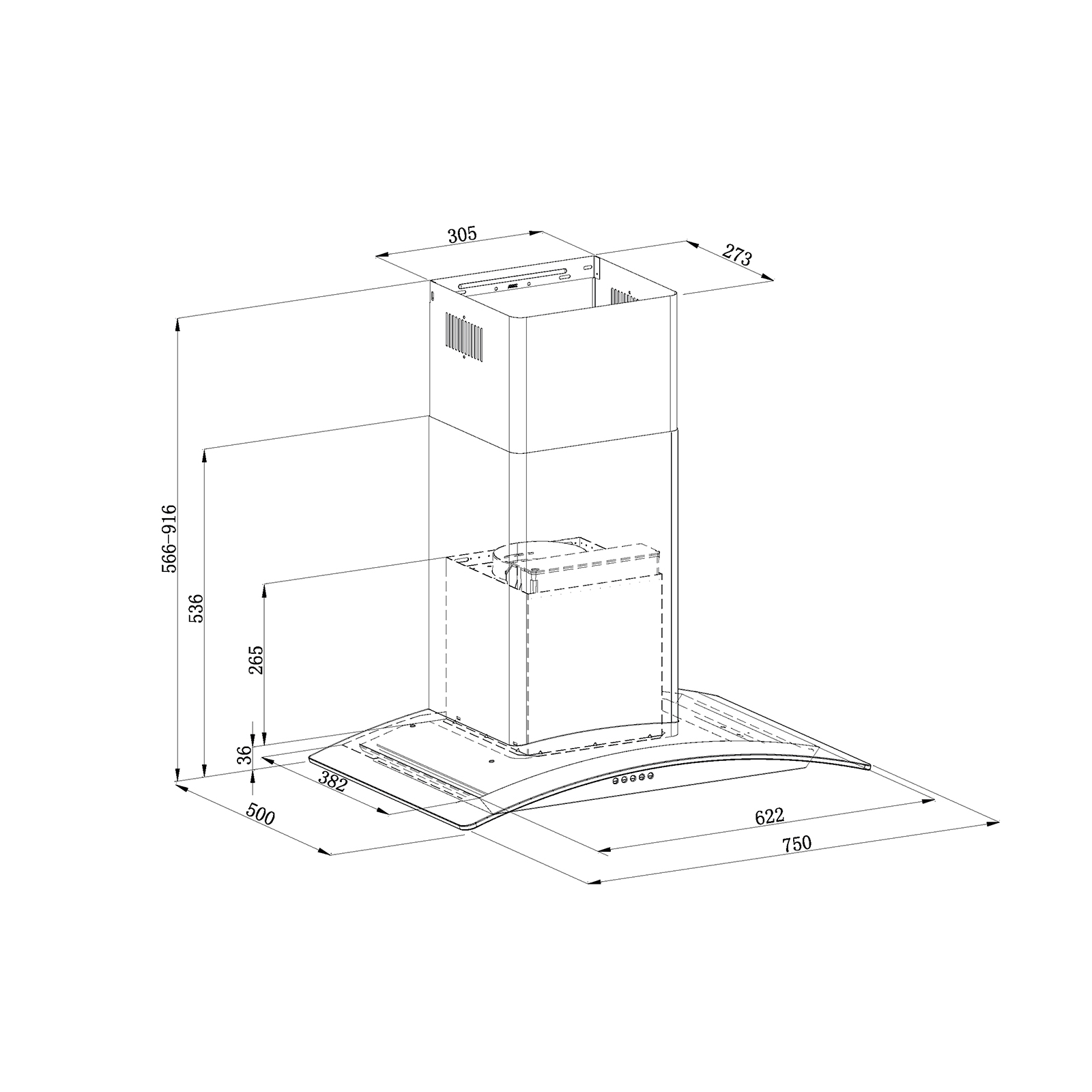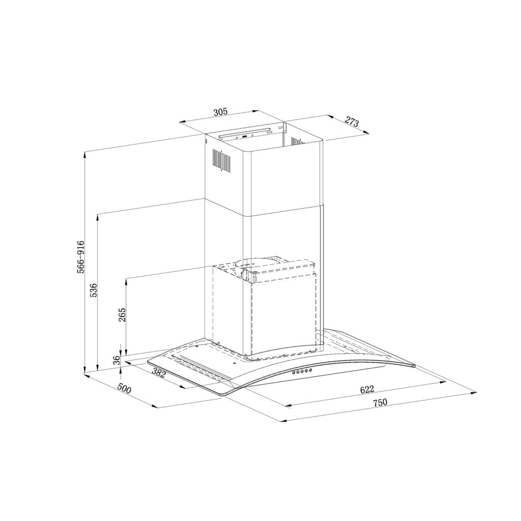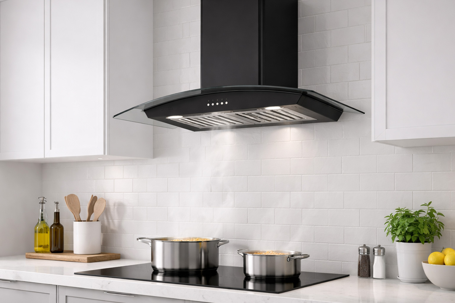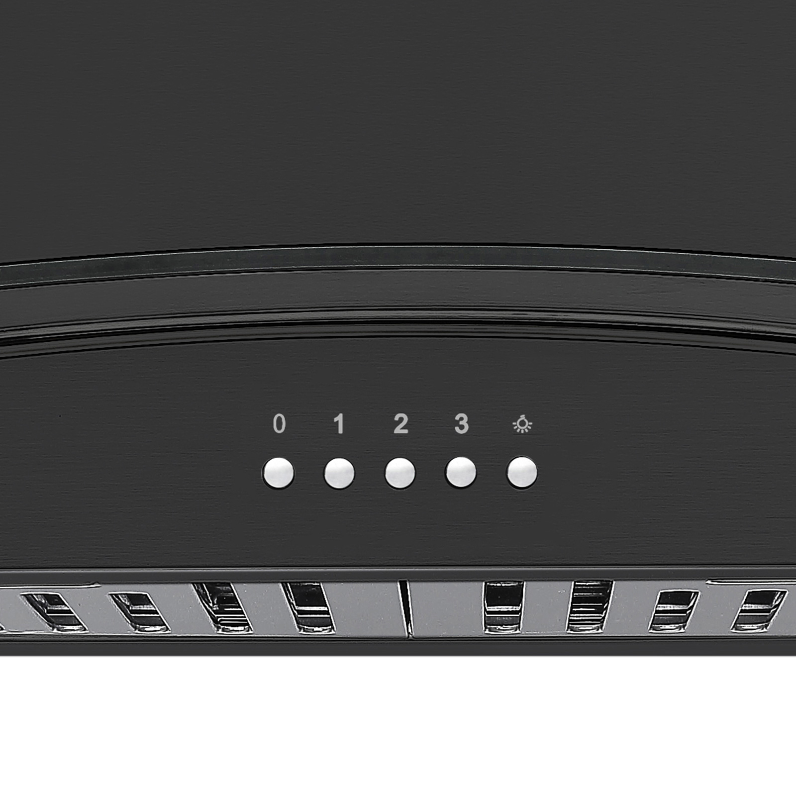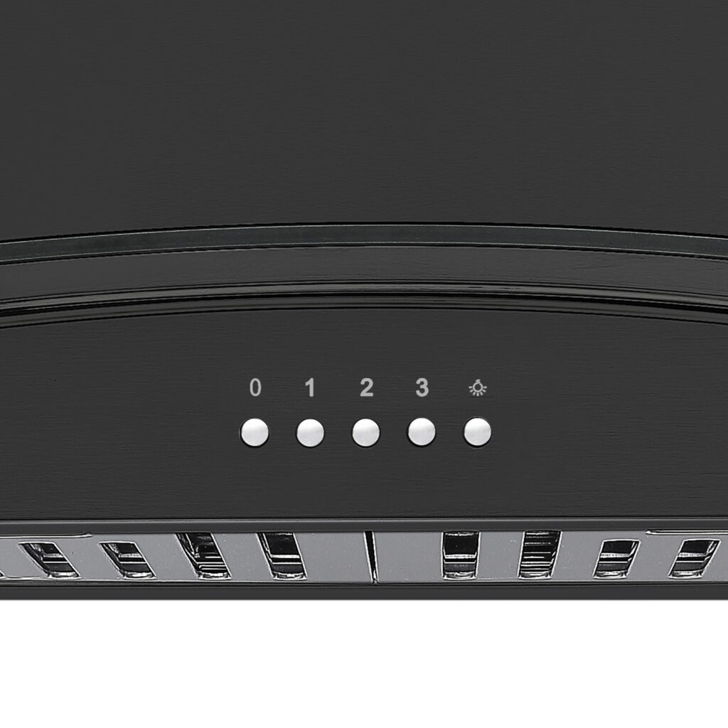 El extractor GALAXY 76 BLACK | ACERO combina acero negro mate y vidrio templado para integrarse con elegancia a cocinas modernas. Su capacidad de extracción máxima de 500 MCH ayuda a mantener el ambiente más limpio, reduciendo humo y olores durante la cocción. Incluye panel de botón pulsador, 3 velocidades y 2 luces LED para ver con claridad lo que estás preparando.