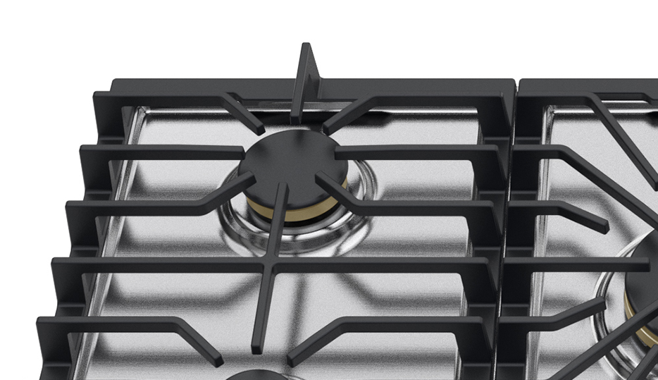 Una sola estructura robusta y continua que facilita el deslizamiento de ollas grandes y resiste el desgaste diario.