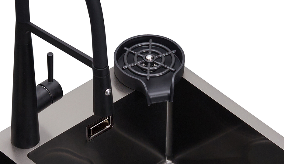 Limpia copas y vasos fácilmente con su accesorio de presión giratoria.