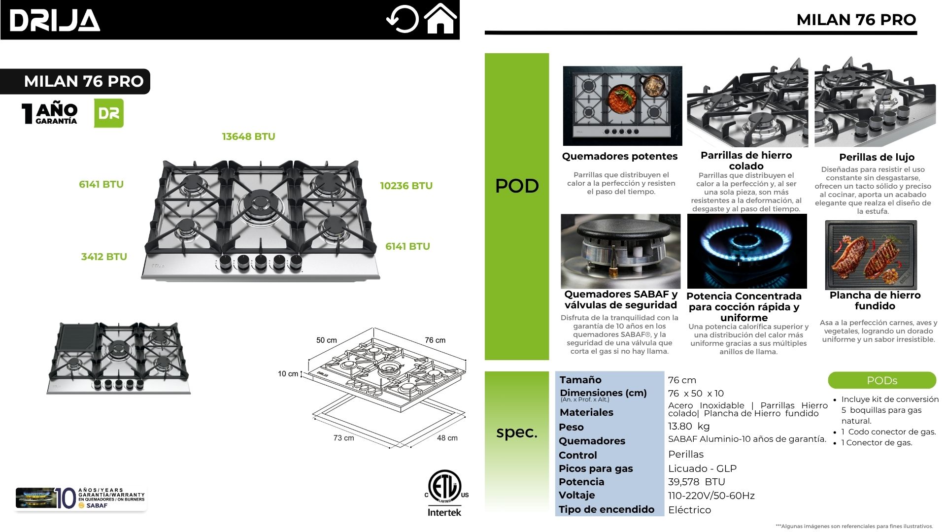 | Quemadores | SABAF Aluminio – 10 años de garantía |