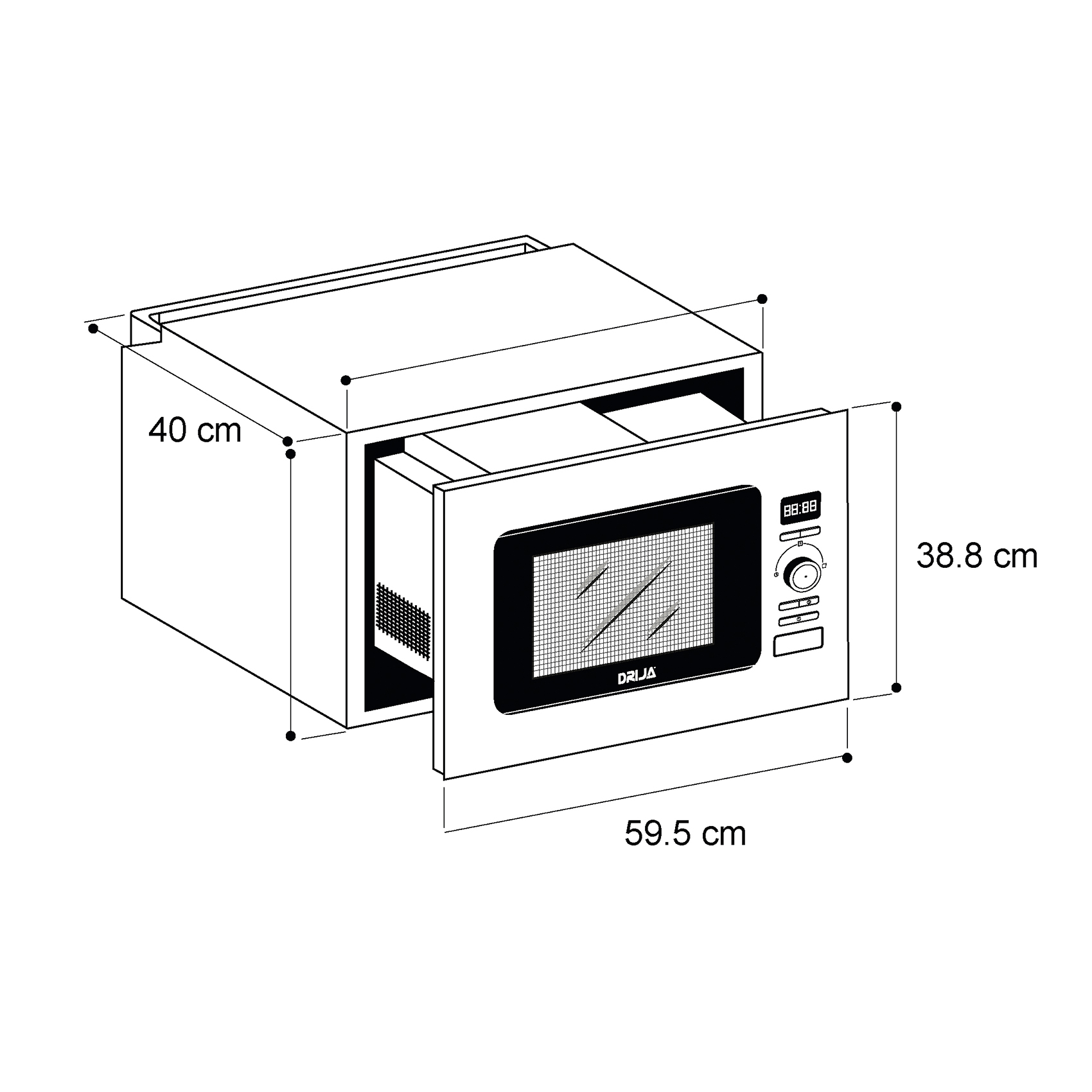 MaterialVidrio negro (frontal) / Cavidad de acero inoxidable