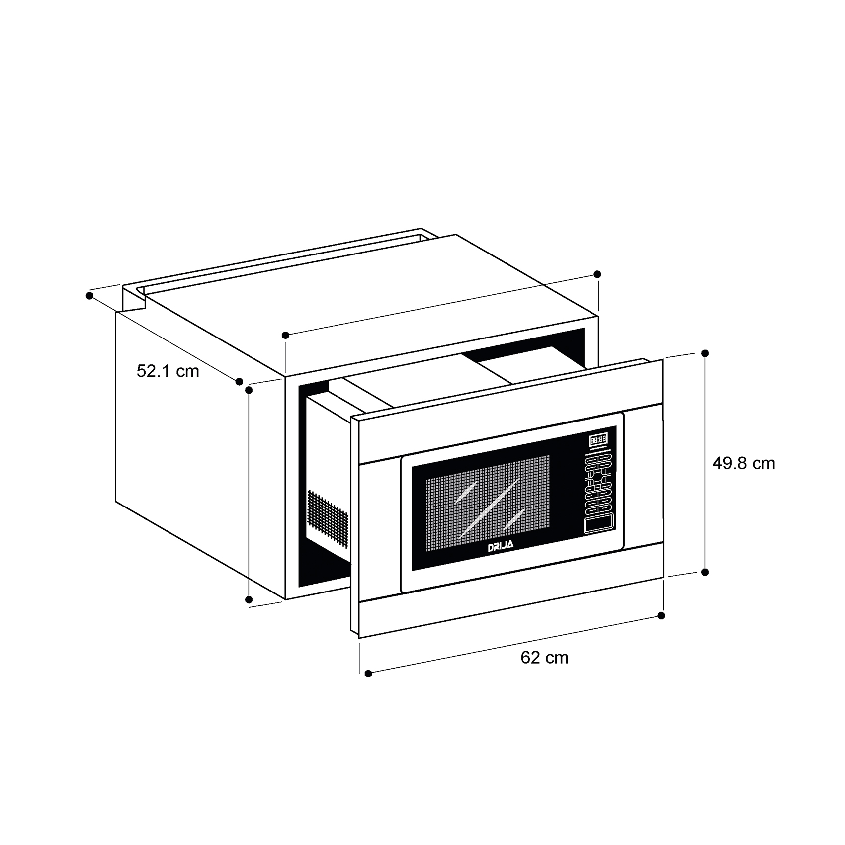 El Palermo 62L de Drija es un microondas empotrable de alta capacidad, diseñado para quienes buscan un equipo potente, elegante y funcional. Su acabado en acero inoxidable, panel táctil y sus múltiples funciones automáticas lo convierten en la solución perfecta para cocinar, calentar y descongelar con precisión y estilo.