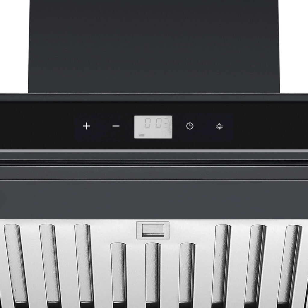 El extractor QUADRATO 76 BLACK | ACERO combina diseño vertical delgado con alto poder de extracción (500 MCH) para mantener tu cocina libre de olores, humo y grasa. Su panel digital facilita el control de las 3 velocidades, mientras sus filtros de acero inoxidable y filtros de carbón activo trabajan en conjunto para una ventilación eficiente, ya sea con ducto o recirculación. Además, incorpora luces LED que mejoran la visibilidad de la zona de cocción y aportan un look moderno, limpio y funcional.