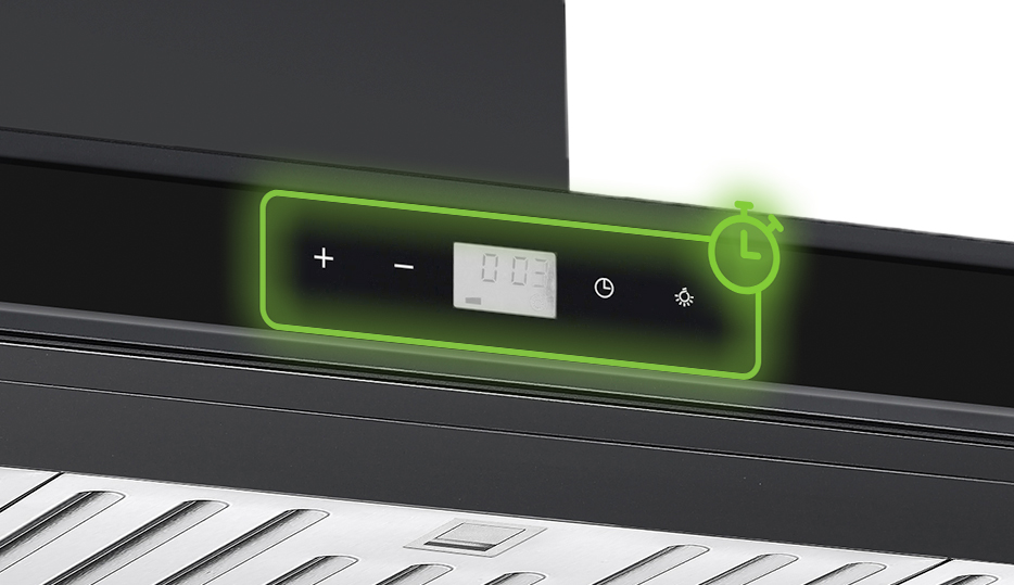 Permite visualizar la hora y programar el funcionamiento del extractor hasta 1 hora, para mayor control y comodidad.