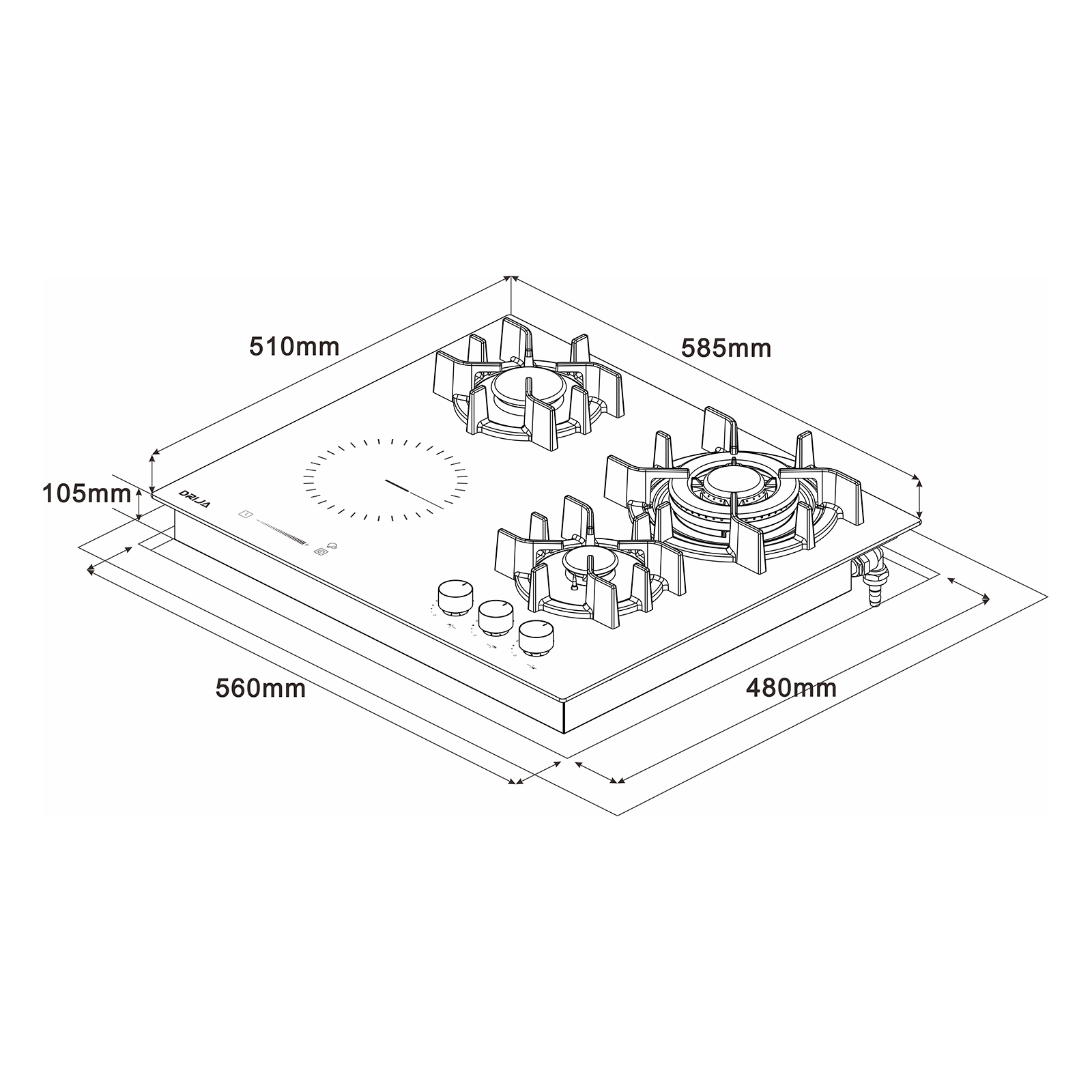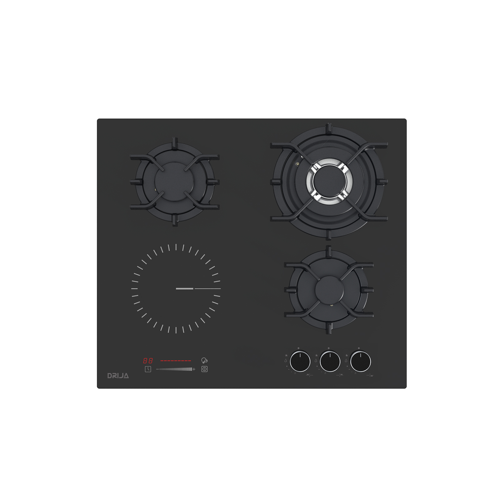 Quemadores3 a gas (11,600 | 6,000 | 3,000 BTU) + 1 eléctrico (1.2 kW – 16.5 cm diámetro)