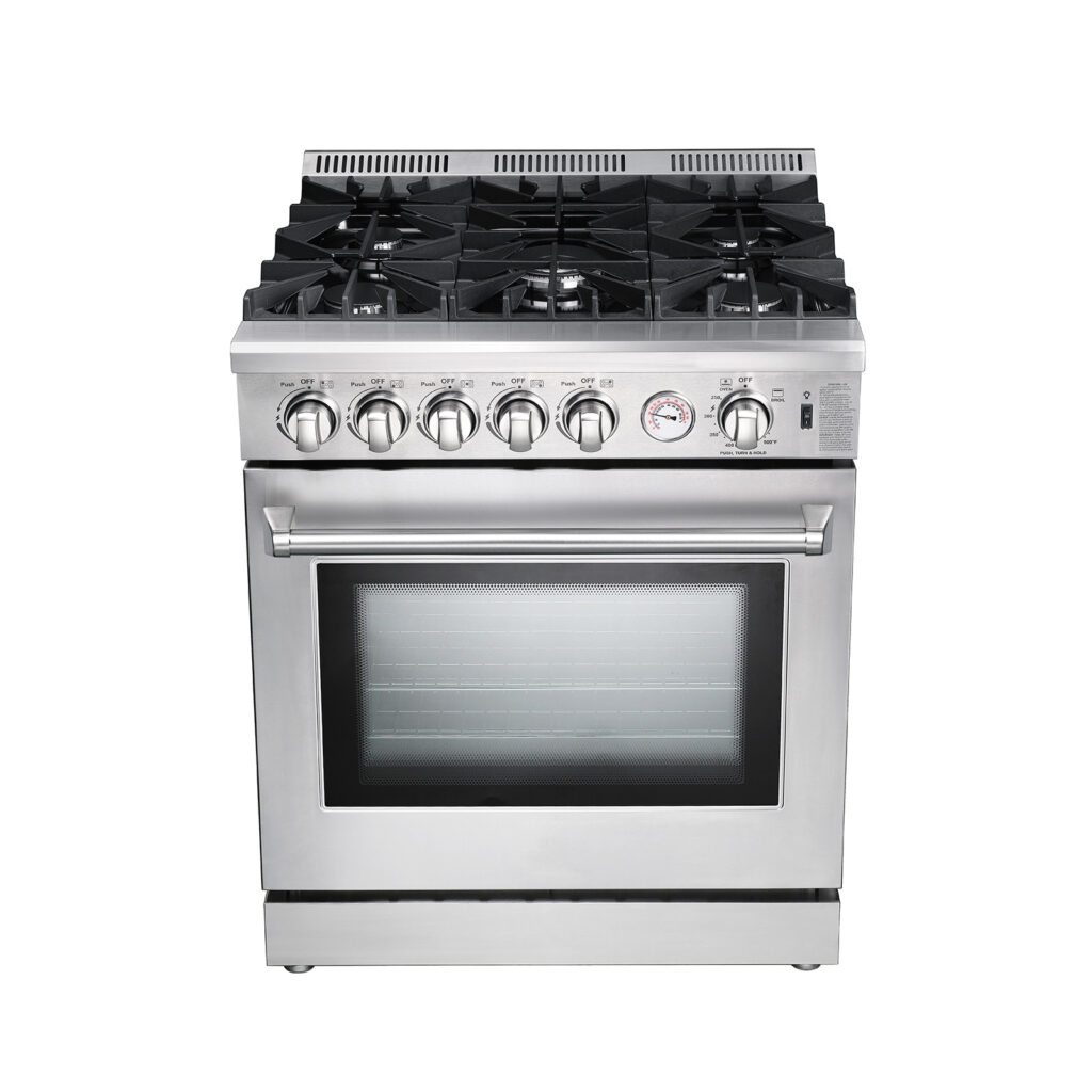La Venecia 76 es una cocina de piso a gas diseñada para quienes exigen potencia, durabilidad y diseño profesional. Con quemadores de alto rendimiento, horno de gran capacidad con convección y parrillas continuas de hierro colado, ofrece una experiencia culinaria robusta y funcional. Perfecta para cocinas domésticas con exigencias profesionales.