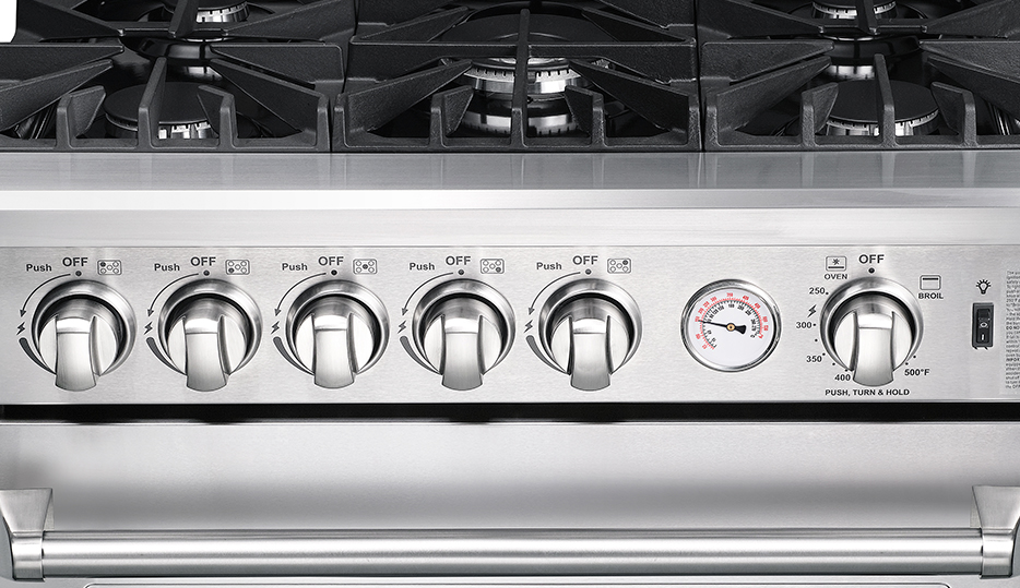 Cuerpo de acero inoxidable y diseño profesional, con perillas metálicas de control preciso y acabado de alta durabilidad.