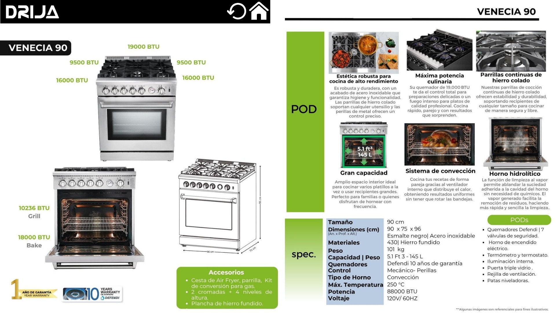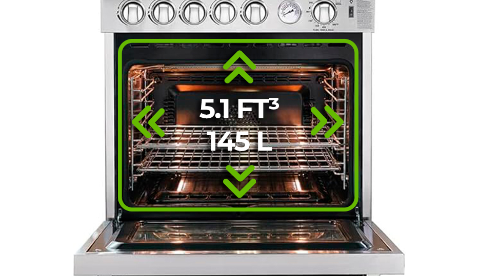 | Capacidad del Horno | 5.10 ft³ (145 L) |